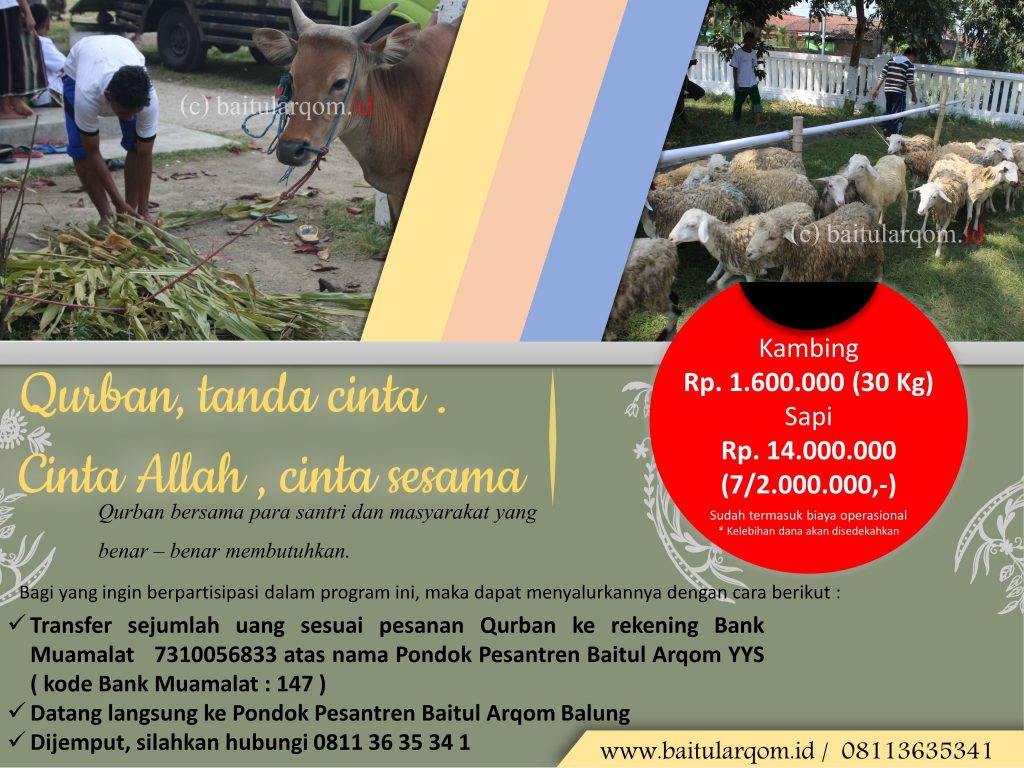 ~ Pondok Pesantren Baitul Arqom memudahkan Bapak / Ibu / Saudara/i dalam berqurban. Memberikan ketentuan terbaik sebagai berikut :